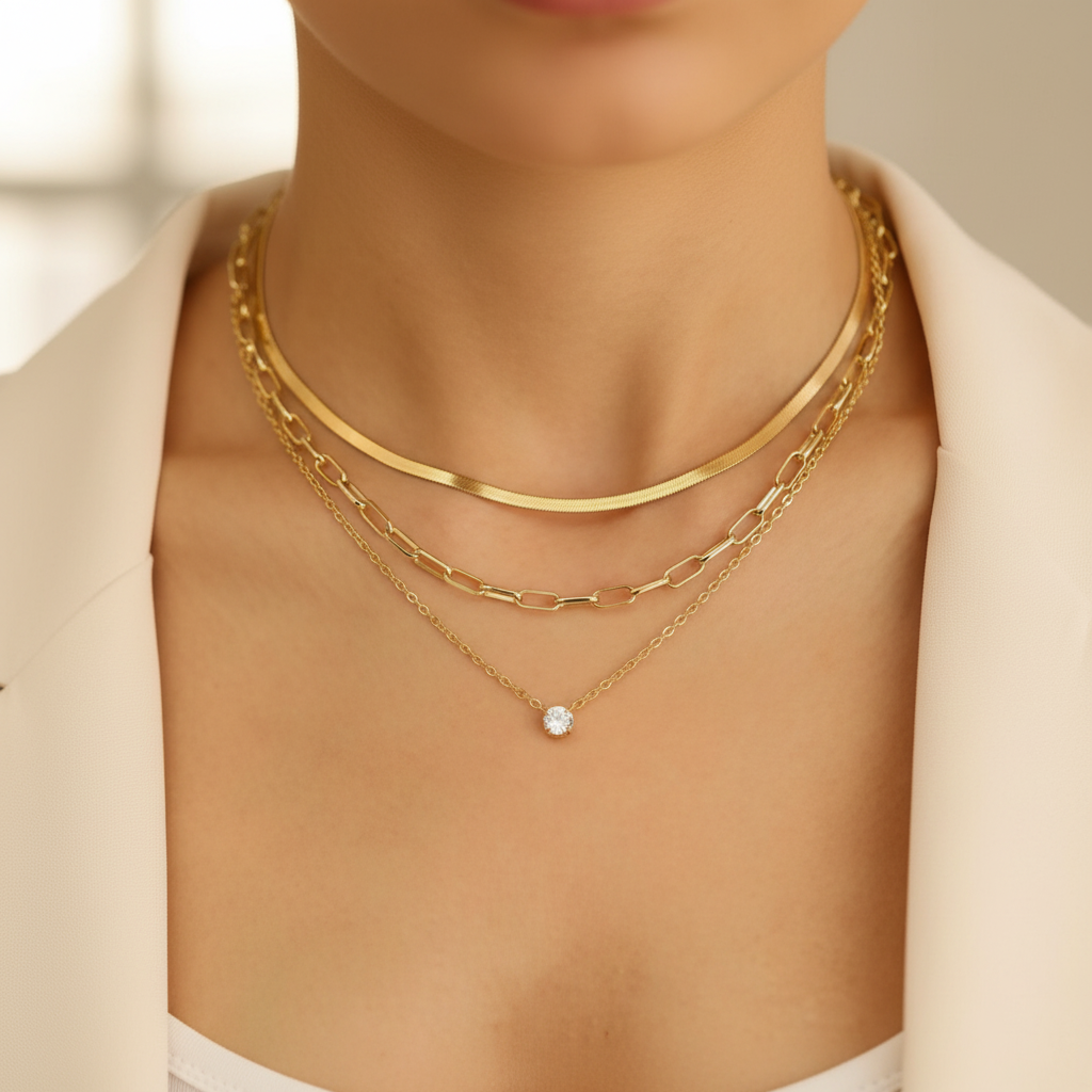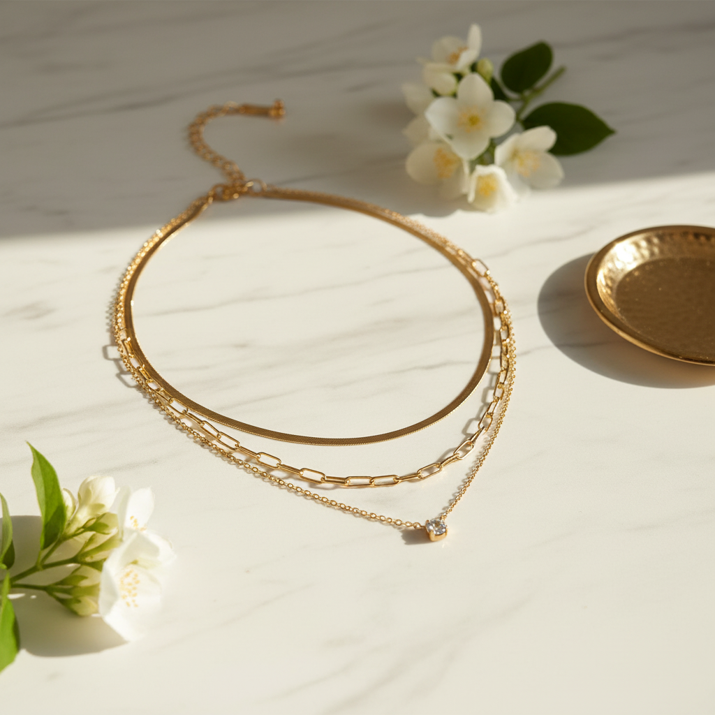 Crafted from premium 18K gold-dipped stainless steel, this necklace is made to shine day after day without fading, tarnishing, or irritating your skin.
